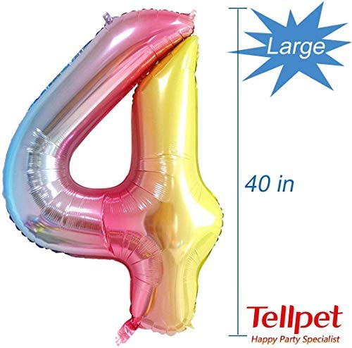 Tellpet Number 4 Balloon Foil Myalr 4th Birthday Party Decorations, Rainbow, 40 Inch