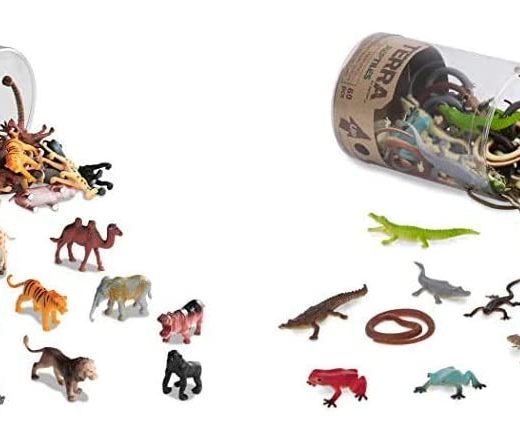 Terra by Battat u2013 Wild Animals u2013 Assorted Miniature Wild Animal Toys & Cake Toppers for Kids 3+ (60 Pc) & u2013 Reptiles in Tube u2013 Assorted Reptile Animal Toys & Cake Toppers for Kids 3+ (60 Pc)