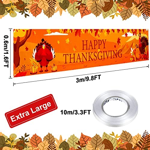 Thanksgiving Party Supplies Large Happy Thanksgiving Banner Thanksgiving Decorations Fall Banner for Outdoor & Indoor, Thanksgiving Turkey Maple Leaves Pumpkin Banner Decor (9.8 x 1.6 FT)
