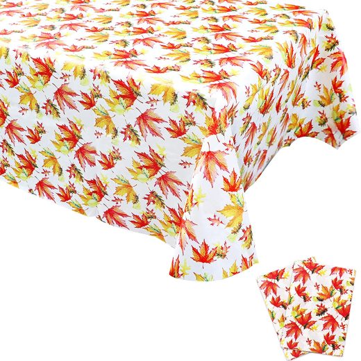 Thanksgiving Tablecloth Maple Leaf Plastic Tablecloth 2 Pack, Autumn Thanksgiving Theme Party Supplies Square Table Cover Waterproof Table Cloth for Birthday Party Table Decor