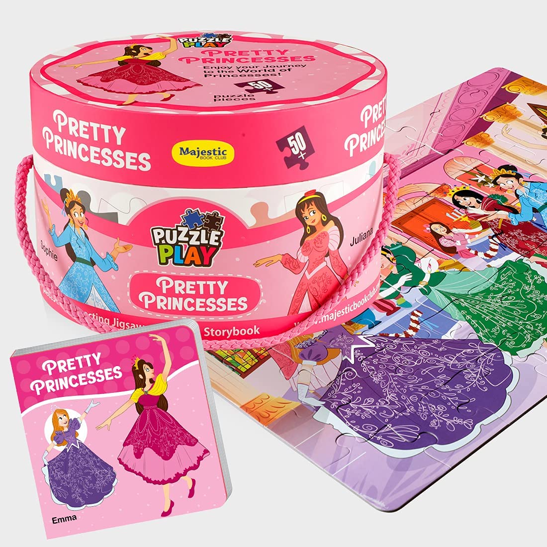 THE BOOK TREE 50 Piece Big Size Puzzle Play Pretty Princes Puzzle Set with 1 Story Board Book for Children
