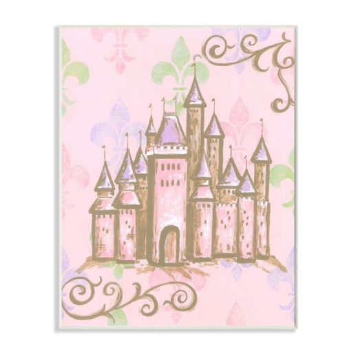 The Kids Room by Stupell Castle with Fleur de Lis on Pink Background Rectangle Wall Plaque