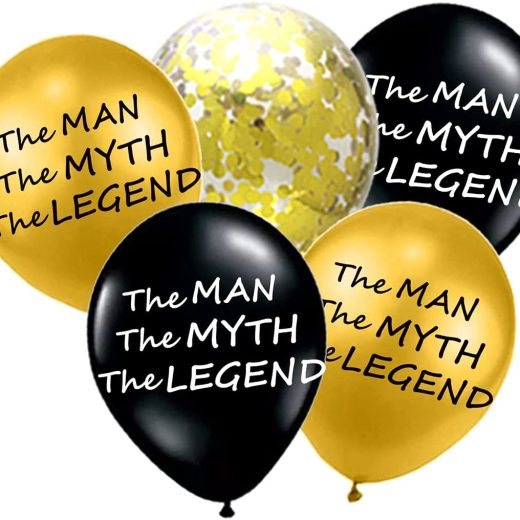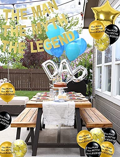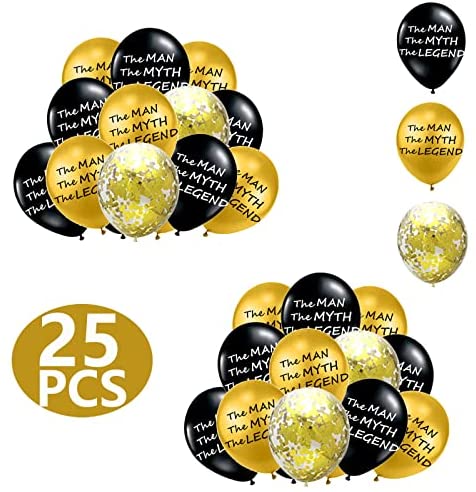 The Man The Myth The Legend Balloons Black and Gold Confetti Funny Party Balloons for Him Husband Guy Fathers/Dads Day Birthday Retirement Decoration 26Packs