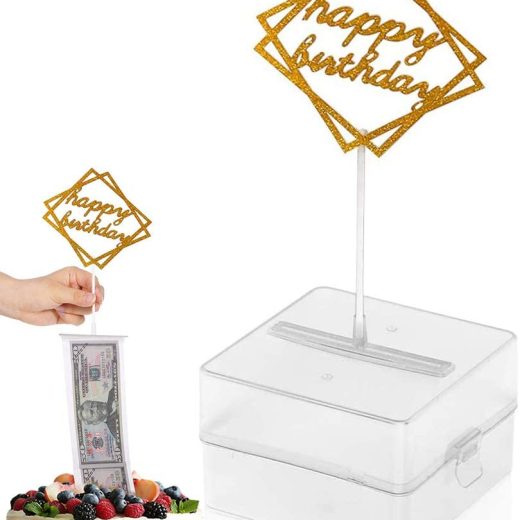 Be the first to review “The Money Cake, Cake Money Box-Cake Money Pull Out Kit Includes 1Pc Clear Food-Contact Safe Box, 1Pc Gold Cake Topper, 20Pcs Pockets for Birthday Party Cake Decorations” Cancel reply