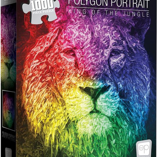 The Op Games Polygon Portrait King of The Jungle 1000 Piece Jigsaw Puzzle | Vivid & Colorful Puzzle Featuring Lion Portrait with Polygon Design Elements | Puzzles for All Ages – Kids to Adults