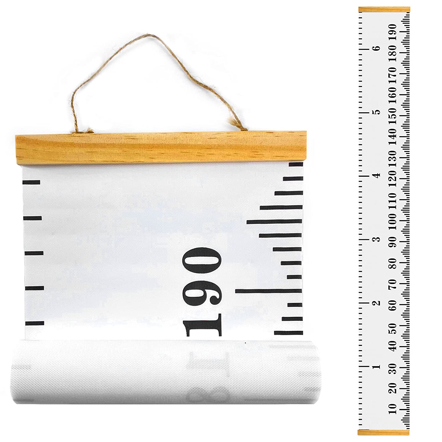 Theshai canvas growth chart for kids – unisex kids room wall decor – Made of quality solid wood and canvas, compare with paper height chart, our baby chart is waterproof and durable, you could use it for years. -Our canvas of high quality can be painted on with a pen that you can draw a horizontal line on the hanging chart to record your childs height. – Brief color style, matches the colors of boys/girls room perfectly. -Apply for Kids nursery decoration, kids bedroom, interior walls or windows, living room, and home decoration. -A charming present for kids birthday, mark up kids height record, measuring the growth of infants. ACCURATE MEASUREMENT In order to provide information from different dimensions, our ruler is graduated in centimeters, inches or foot. Numbers are large and clearly displayed EASY TO INSTALL AND MOVE Just find a two-meter point on wall, put the ruler there to find the point for rope, knock in a nail and hang this kids growth chart. The entire kid growth ruler rolls up, making it easy to relocate or store as needed. Specifications: Item type: Kids height chart Material: Wood + canvas Color: White Size:79 × 7.9inch/200 × 20cm. Install Note: -Please first place the growth chart at a height of 2 meters to determine the position of the rope. -Then fix a nail or stick a pothook in the corresponding position of the rope. -Finally hang our growth chart there and done!