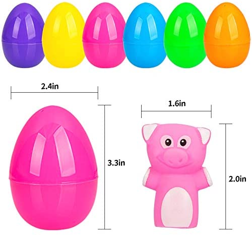 EASTER BASKET STUFFER: There are 12 cute animal finger puppets prefilled into a dozen bright colorful Easter eggs. Excellent for kids’ Easter gifts, Easter party favor, Easter eggs hunt, classroom prize supplies. ANIMAL FINGER PUPPETS: The Easter finger puppets include chick, puppy, cow, elephant, sheep, tiger, piggy, zebra, and more. Your kids will have funny bath time with these little animals. ENCOURAGE IMAGINATION: It has enough quantity for kids to play with friends. They can enjoy hours of make-believe, role play, and telling stories. Enhance childrens imagination and promote brain development. WARM FAMILY TIME: Perfect for parents and children to play together and strengthen the bonds of family. Spend more time accompanying children and they will grow up happily. SAFE & NONTOXIC: Both Easter eggs made with plastic and animal finger puppets made with rubber are safe and nontoxic. Soft rubber opening offers a snug fit for little hands.