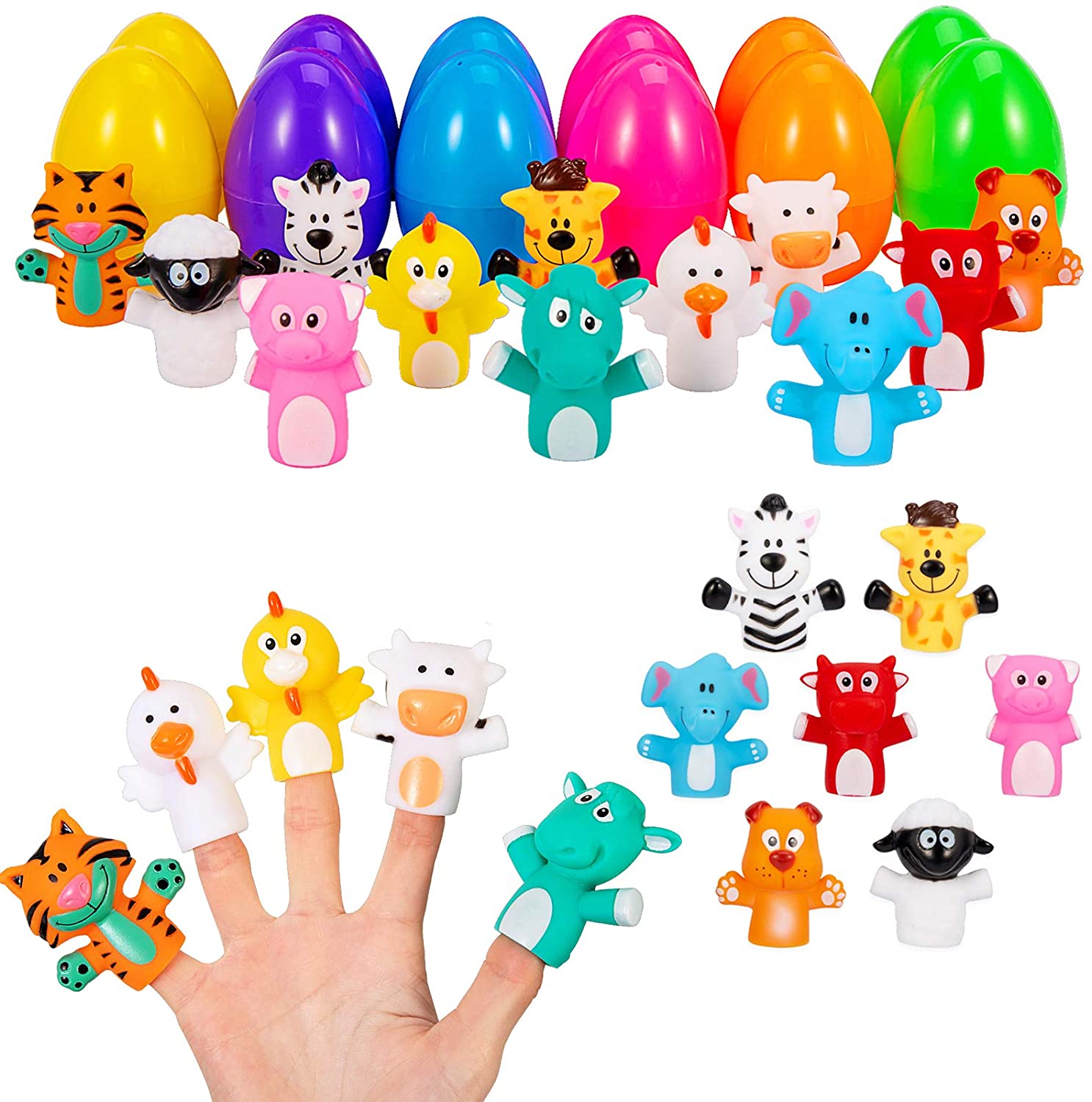 ThinkMax 12pcs Easter Eggs Prefilled with Animal Finger Puppets for Easter Party Favor, Easter Eggs Hunt, Easter Basket Stuffers, Classroom Prize Supplies