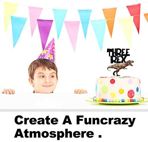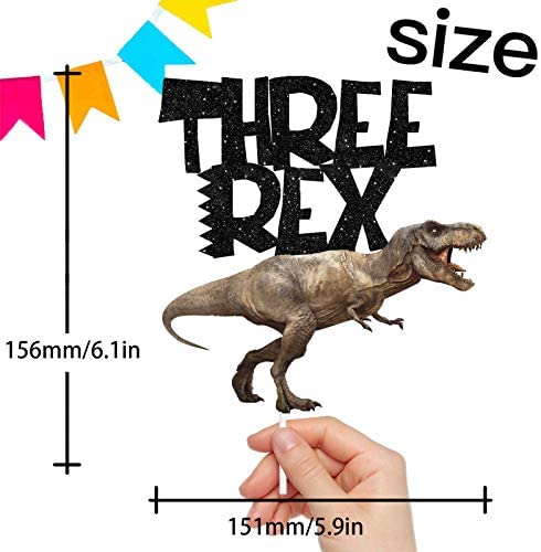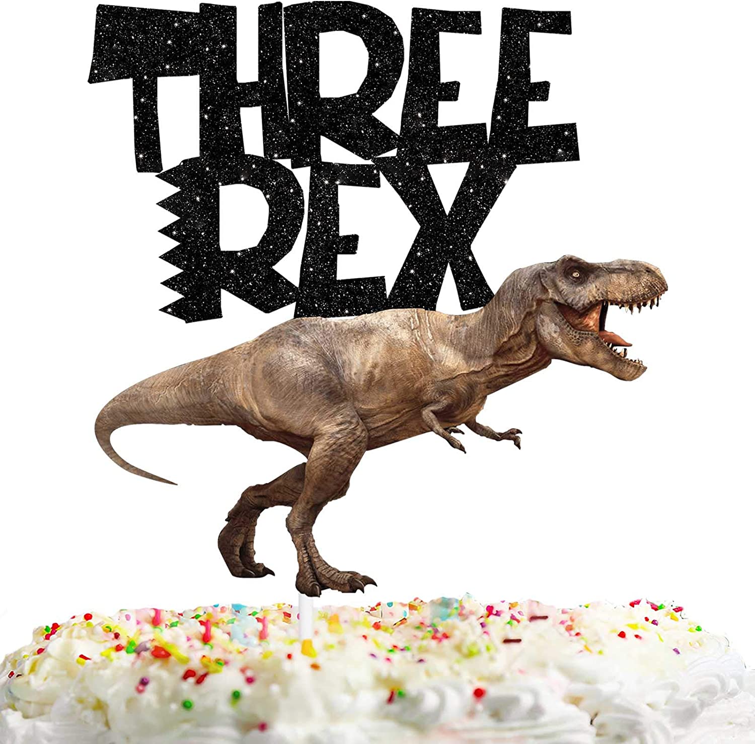 Three Rex Cake Topper Dinosaur Theme Decor Picks for Jurassic Park T-Rex 3rd Years Old Birthday Kids Party Decorations Supplies