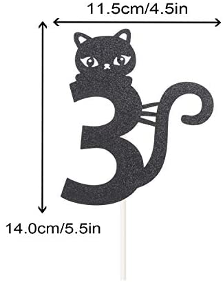 Three Year Old Kitty Cat Cake Topper for Happy Third Birthday,Baby Shower 3rd Wedding Anniversary Party Decorations