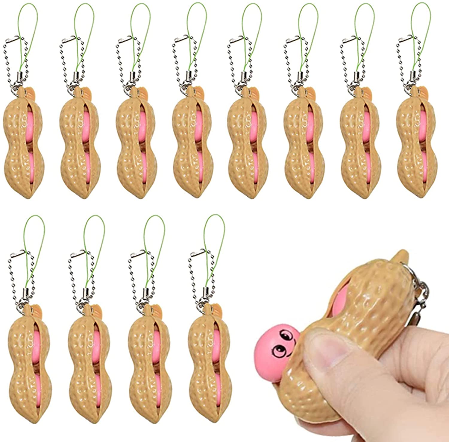 TIBDALA Peanut Popper Fidget Toys, 12PC Peanuts Keychain Fidget Toys Set, Squeeze Peanut Peapod Soybean Stress Relieving Sensory Fidget Toys Gift for Adults Kids Relief Anti-Anxiety