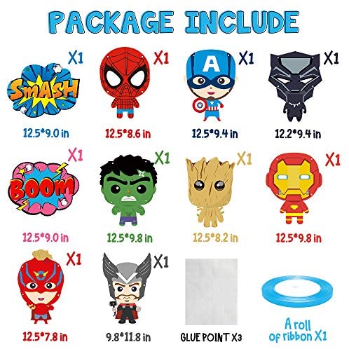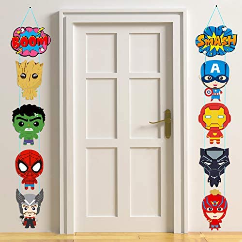 Ticiaga 10pcs Superhero Porch Sign, Hanging Sign Wall Decoration Superhero Party Banner, Door Cardborad Cutout Signs Outdoor Decoration, Hanging Cards Kit for Superhero Theme Party Decoration