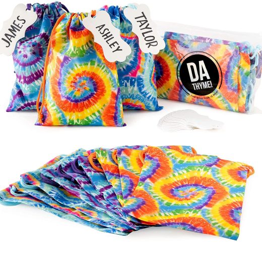 HIDES SURPRISES BETTER! While other tie die gift bags for kids fall apart at the seams, or reveal whats inside with their thin lower quality fabrics, DA THYME party and birthday bags are made from our special poly/cotton blend! Theyre stronger and thicker and wont reveal the surprises before its time! SET OF 12 DRAW STRING BAGS: These are NOT backpacks. They are 10×7 Poly/Cotton Bags with a drawstring opening for things like party favors, gifts, toys, candy, games and other tie dye stuff! This set of 12 party gift bags also comes with a BONUS 12x White Gift Tags to label each goodie bag. NOSTALGIA PLUS FUN! This year saw a huge revival in tie dye clothing, so stay on trend at YOUR party with a set of loot bags that fills the room with peace, love and memories. And for kids, theyre fun and bright for Luau party favors, pool party bags, summer gift bags, or hippie party supplies! CHOOSE YOUR PATTERN: Each set of bags is available in two different tie dye colors. This set features 12 Multicolor Spiral cloth favor bags, and the only one of the kind! Check them out and choose your fave! STRONG AND REUSABLE: Your drawstring party favor bags have strong side seams, and a seam-less bottom so theyre stronger, hold their shape better, and you can fill each gift bag with up to 10lbs of loot! We even back them up with a lifetime warranty! Try them now and lets get groovy baby!