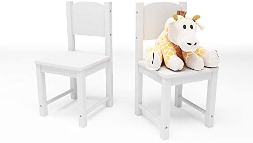 Wide Application: The Kids chairs size fit most Kidstable.Ideal for your toddlers bedroom, playroom or the living room. Sturdy Construction: The chair pair made of sturdy solid wood and MDF. Durable and easy to assemble. Safe for Kids: The environmentally friendly paint is non-toxic. Smooth surfaces and rounded corners to avoid any potential scratches. Ideal Size: 11.8L x 11.8W x 23.6H inch,includes 2 chairs. Age Range: Timy toddler chair pair specifically designed for younger children, perfect choice for ages 3 to 8 years kids.