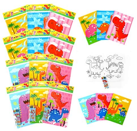 Tiny Mills Dinosaurs Coloring Book for Kids Party Favor Set with 12 Coloring Books and 48 Crayons Dinosaurs Jurassic Birthday Party Supplies Dinosaur Party Favor Bag Fillers