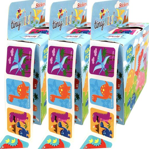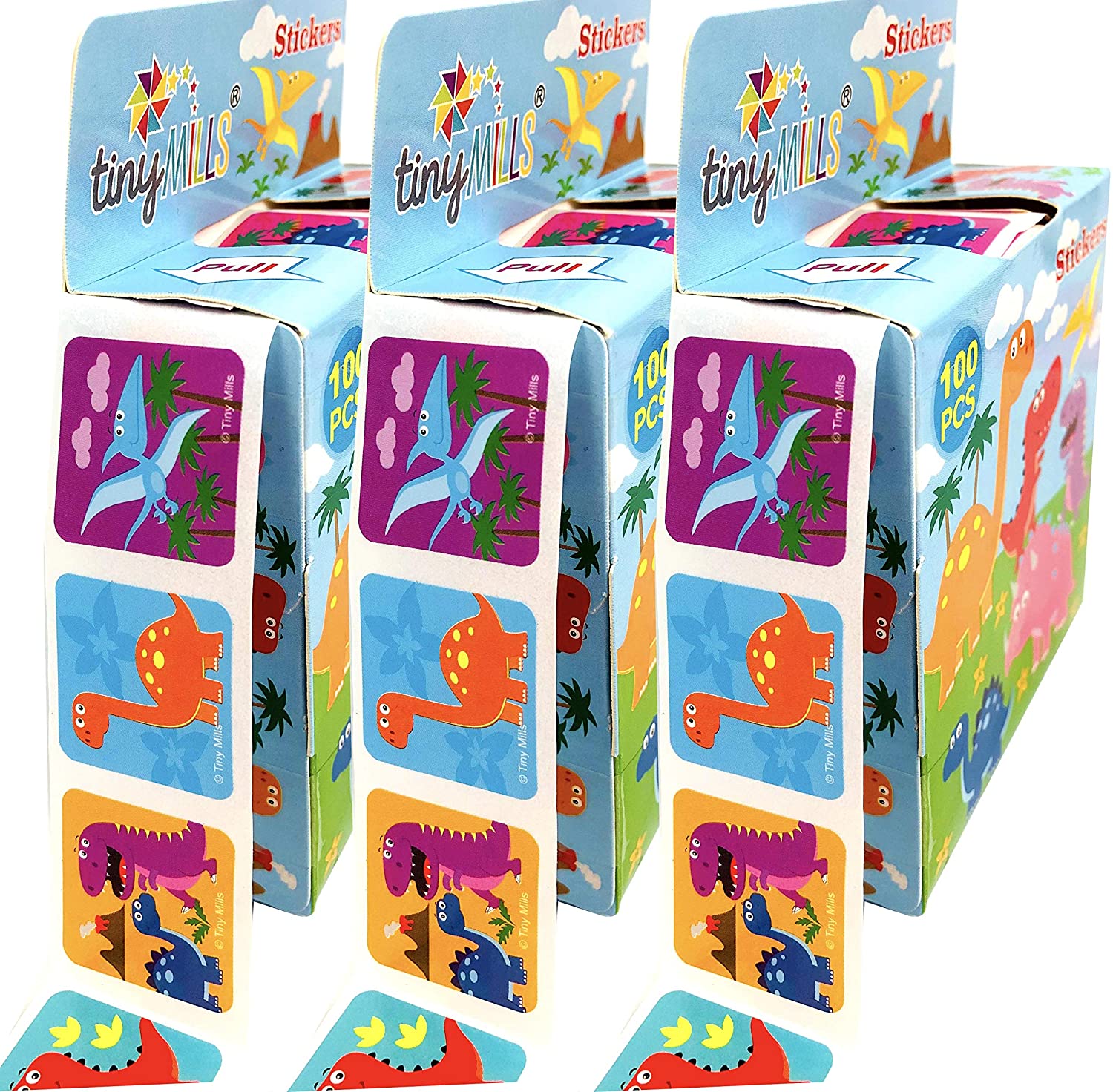 TINYMILLS Dinosaur Stickers for Kids Party Favor Supplies Pack (1200 Stickers Total) Pack of 12 Sticker Dispensers with 100 Stickers/Dispenser Birt…