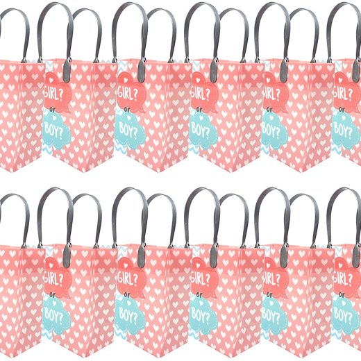 TINYMILLS Gender Reveal Party Favor Treat Bags with Handles Boy or Girl Baby Shower Party Supplies Pink and Blue Gift Bags, Pack of 12