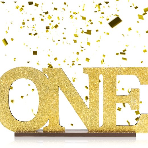 TirEurt Gold Glitter ONE Letter Sign Wooden Table Centerpieces, Table Decorations for Boys Girls First Birthday, the 1st Birthday Party Favor for Baby Infant, Bling Golden Theme Party Decor Supplies