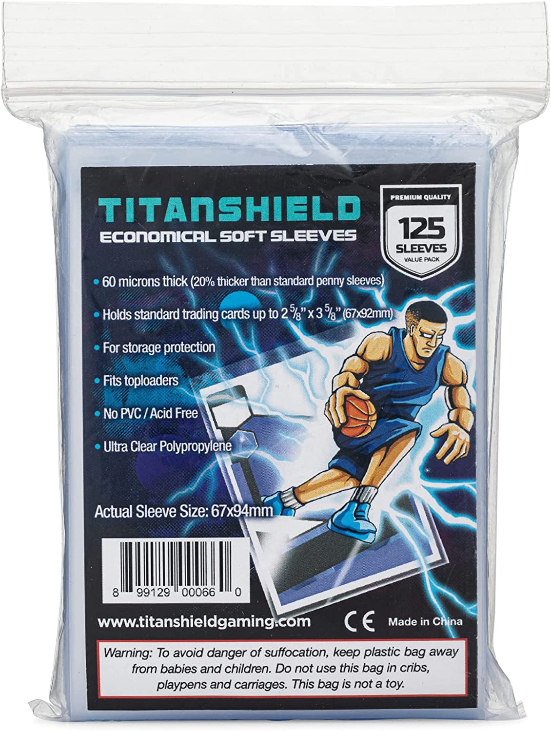 TitanShield Economical Soft Penny Card Sleeves 2-5/8u201d x 3-5/8u201d (67x94mm), Ultra Clear (125 Count)