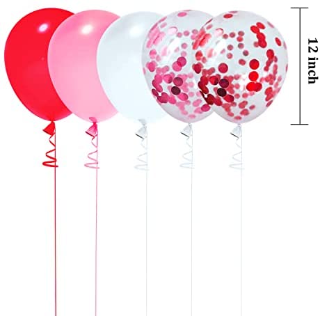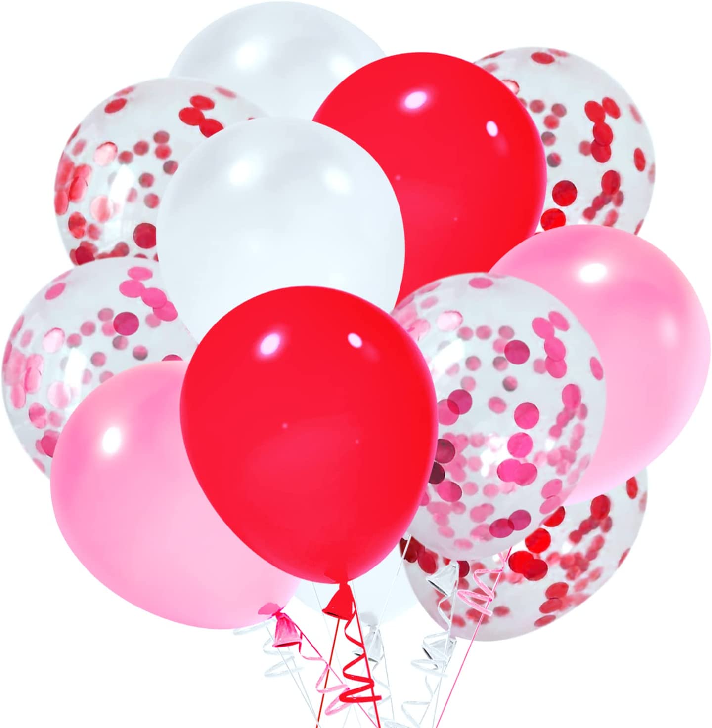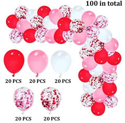 TKEJZu Valentines Day Balloons 100 Pcs 12 Inch Red White Pink Balloons Red Confetti Balloons Pink Confetti Balloons for Valentineu2019s Day Girls Birthday Party Baby Shower Wedding Romantic Party Supplies