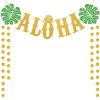 TMCCE Hawaiian Aloha Party Decorations Large Gold Glittery Aloha Banner for Luau Party Supplies Favors