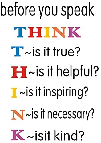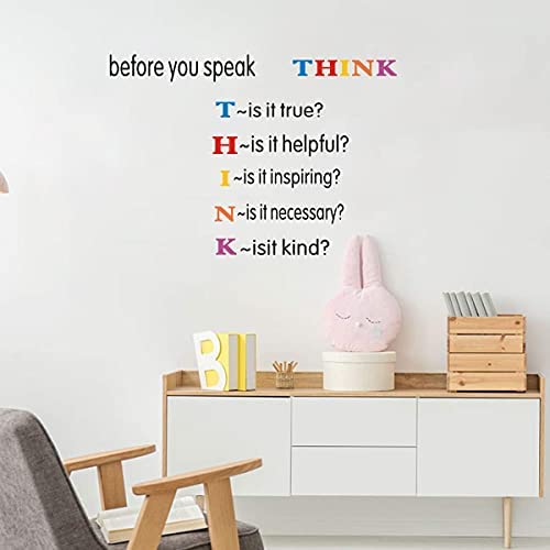 TOARTi Colorful Inspirational Quotes Wall Decals, Before You Speak Think Lettering Wall Stickers, Motivational Positive Saying Vinyl Wall Art for Kids Room Classroom Decor