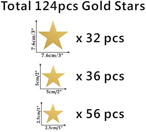 Vinyl Total Contain: Set of 124pcs gold stars stickers includes 32pcs – 3” gold star stickers; 36pcs – 2” gold star stickers; 56 – 1” gold star sti…