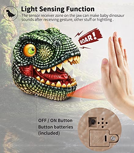 Cute Dinosaur Toys for Toddler: These Play set toy with cartoon Design, bright-coloured , big eyes, vivi tongue, working mouth and baby dinosaur roaring sounds, great for toddler 2-5 years. Including: includes Tyrannosaurus, Spinosaurus and Carnotaurus. Baby Dinosaur Roaring Sounds: when you touch it ,it would make roar sounds. The dinosaur can roar like real dinosaur. Satisfy childrens curiosity and stimulate their imagination. It has a light sensing function, the sensor receiver zone on the chin’s device can make baby dinosaur roar sounds quickly after receiving various gesture or hight light etc. Safe and Soft Material: made of soft rubber material, non-toxic, no odor, no fading, and will not harm children. Parents are at ease, kids have fun. Perfect Gift: Every child is a dinosaur fan, this dinosaur toy will be one of the best gifts for kids on Birthday, Christmas, Thanksgiving, New Year, Birthday, Easter, Party, Educational Purposes, Rewards and Dinosaur Themed Party. Fit for Toddler Hands: Size Approx. 5.5 x 4.3 x 4.7. Three dinosaurs can play together, fight together! Kid can share happiness with their little friends. Let kids start their dinosaur adventure!
