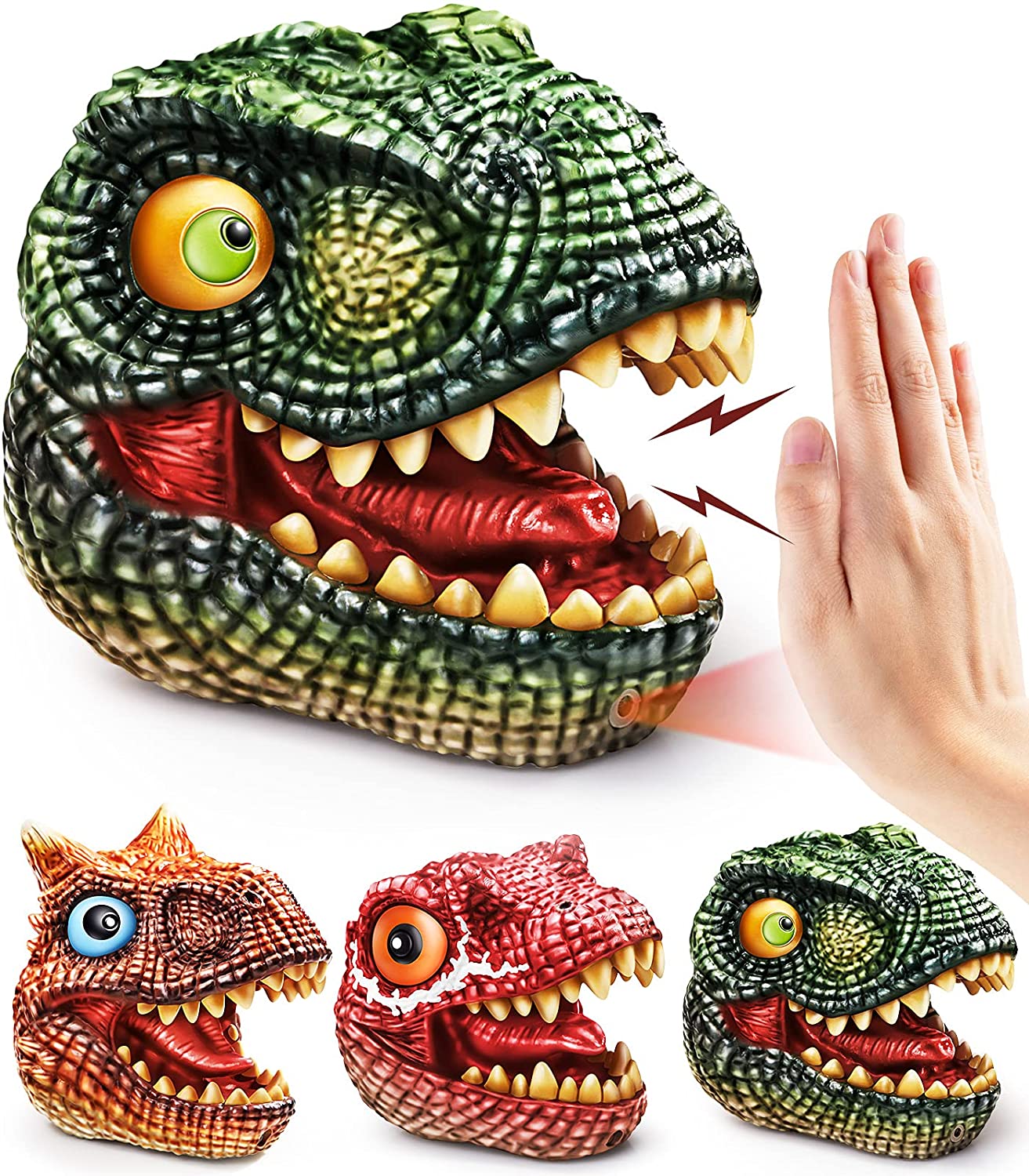 Toddler Puppets Toys, Geyiie Cartoon Baby Dinosaur Hand Puppets Toys Tyrannosaurus Spinosaurus Roaring Dinosaur Sound, Soft Latex Boy Dino Head Toys, Party Favor