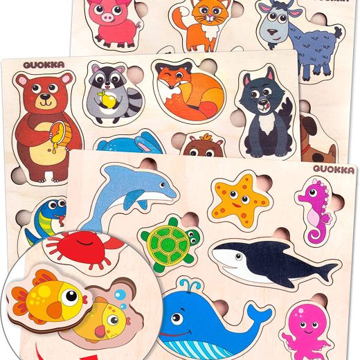 Toddler Toys Puzzles for Kids Ages 2-4 by QUOKKA u2013 3 Wooden Puzzles for Toddlers 1-3 with Matching Pictures Inside – Wood Toy for Learning Animals – Gift Educational Game for Boy and Girl 3-5