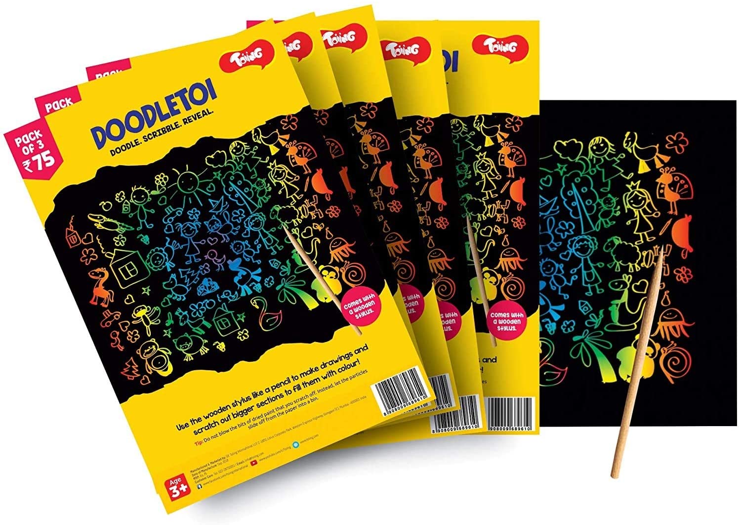 Be the first to review “Toiing Doodletoi Party Favor Combo – 20 Magical Rainbow Scratch Art Sheet Packs | Fun Art & Craft Kit | Great Party Favor For Kids Age 4 Years & Above” Cancel reply
