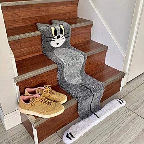 Tom and Jerry Stairs Cartoon Carpet Unique Tom Cat Shape Flat Rug Floor Mats Children Crawling Blanket-Plush_Surface_60cm120cm