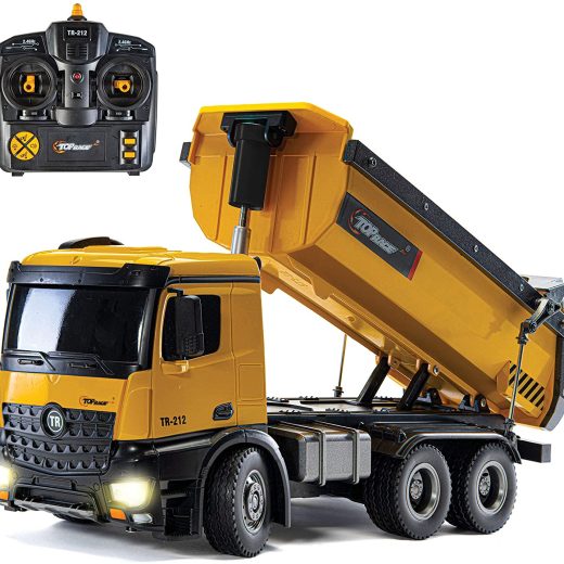 PROFESSIONAL 10 CHANNEL RC Dump Truck: This Top Race Construction Toy Dump Truck is not just a toy, its a professional hobby grade machine. The Best Gift Toy For All Ages. Works great with our Bulldozer, Excavator, and Front loader.
