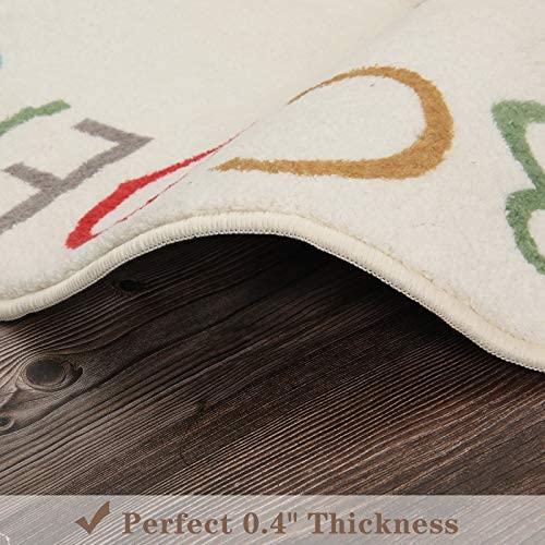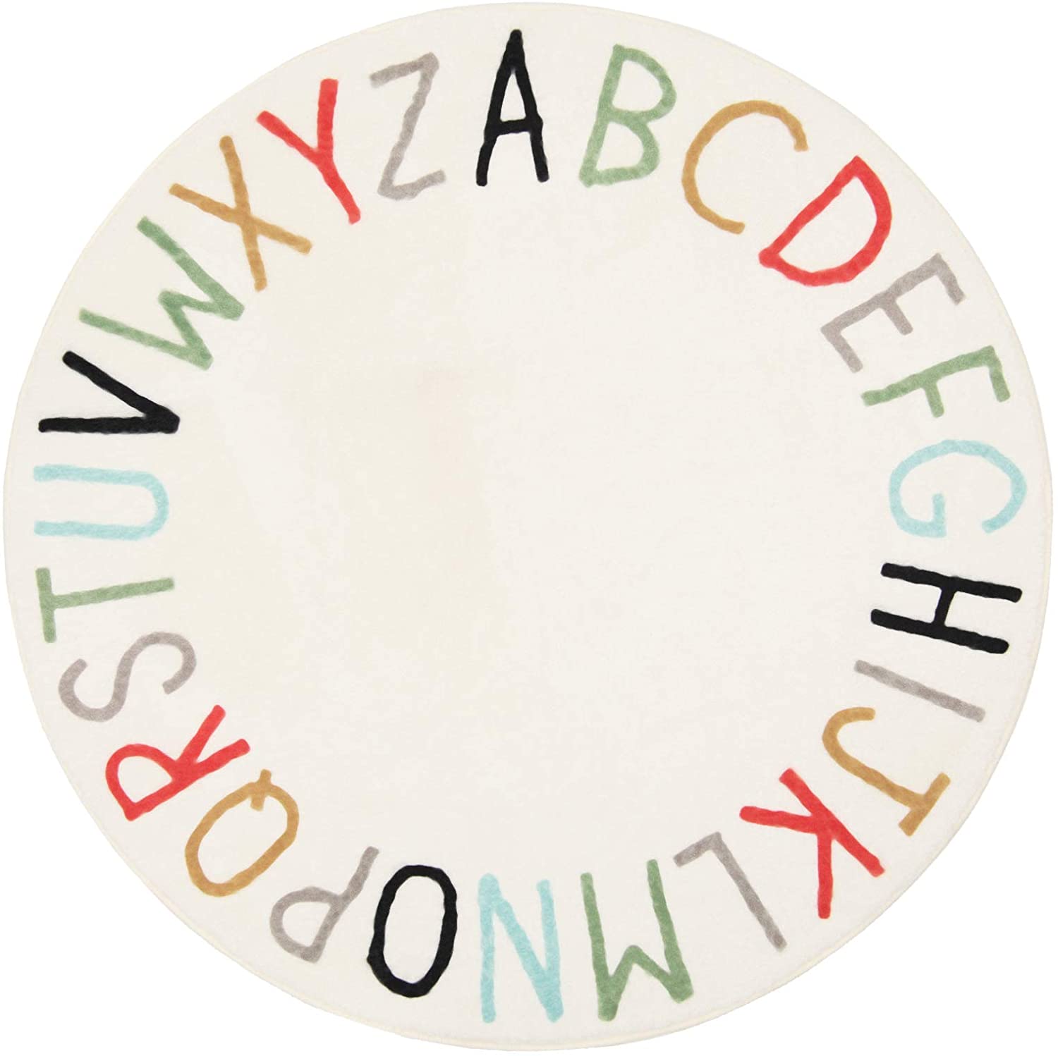 PERFECT SIZE:40 inches in diameter and 0.4 inches thick; Material: cotton and polyester ULTRA-SOFT: This superior alphabet rug is made of premium c…