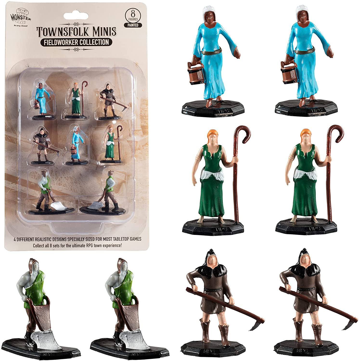 Townsfolk Mini Fantasy Figures – FIELDWORKERS – 8pc Hand-Painted Miniatures – 1 Hex-Sized Compatible with DND Dungeons and Dragons, Pathfinder and All RPG Tabletop Games