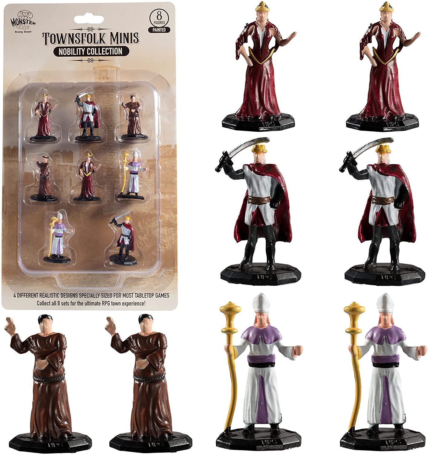 Townsfolk Mini Fantasy Figures – NOBILITY CLASS – 8pc Hand-Painted Miniatures – 1 Hex-Sized Compatible with DND Dungeons and Dragons, Pathfinder and All RPG Tabletop Games