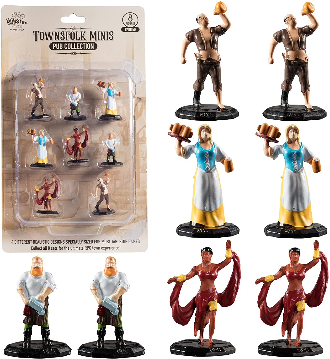 Townsfolk Mini Fantasy Figures – Pub Workers – 8pc Hand-Painted Miniatures (2X of 4 Unique Sculpts) – 1