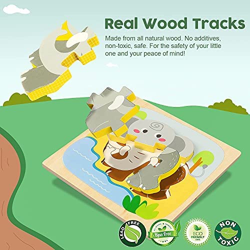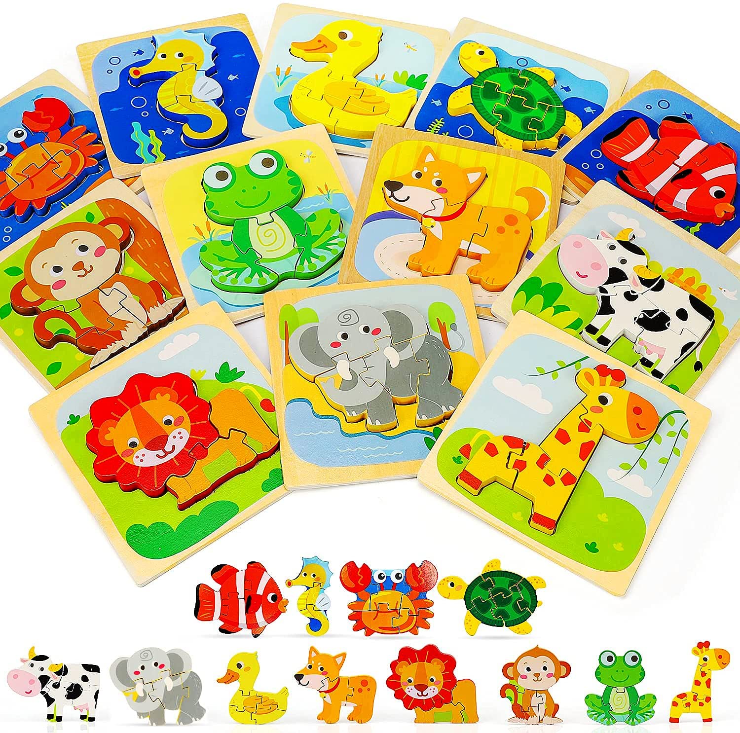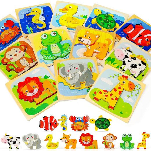 TOY Life 12 Pack Wooden Puzzles for Toddlers 1-3- Animal Shape Puzzles Montessori Toy for Toddler- Baby Puzzles Early Development and Activity Toys Learning Educational Preschool Toy Gifts for Toddler