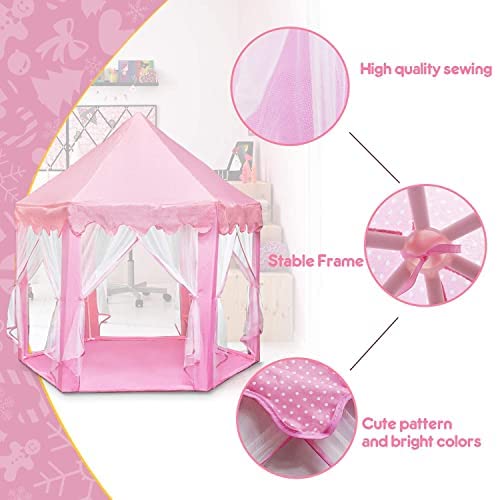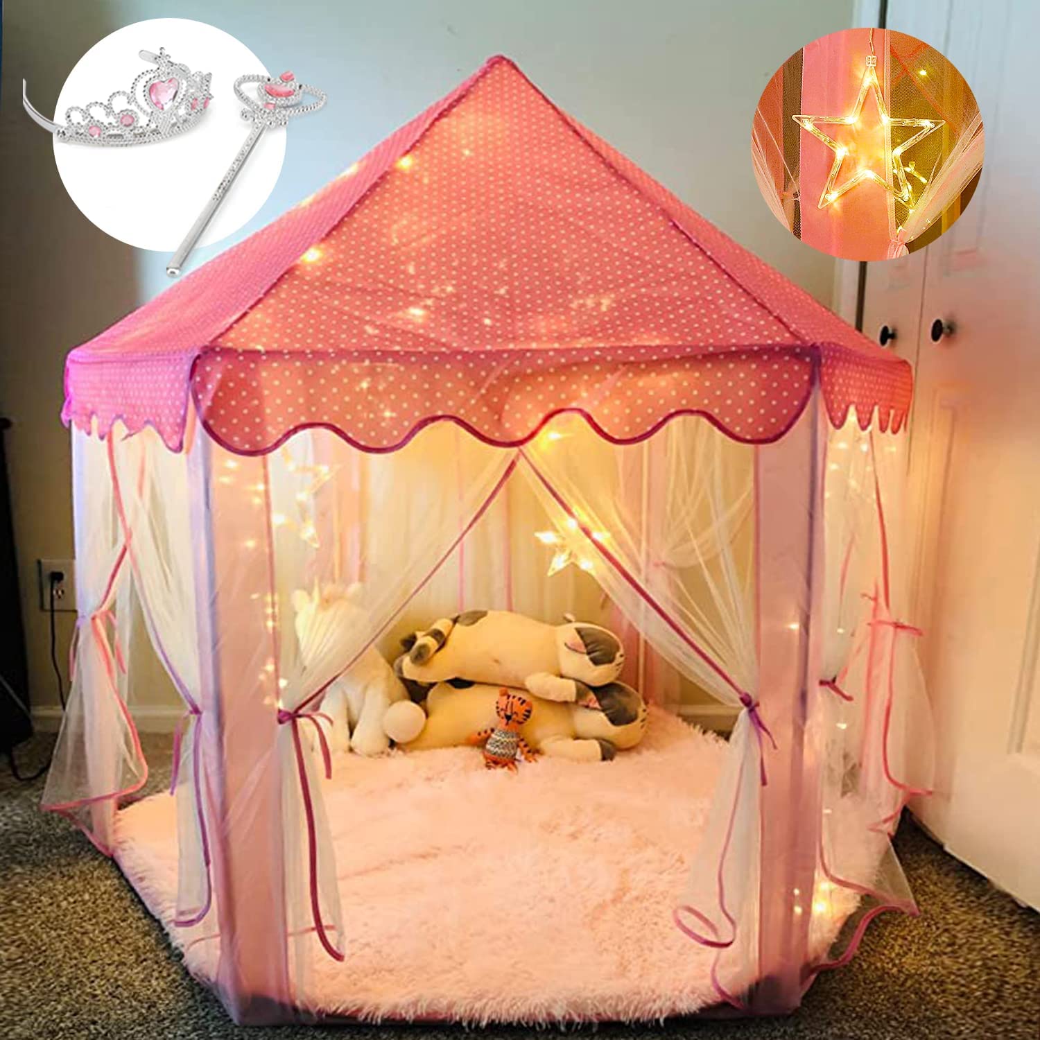 TOY Life Princess Castle Tents for Girls Princess Playhouse Tent with Lights Princess Tiara and Wand 55