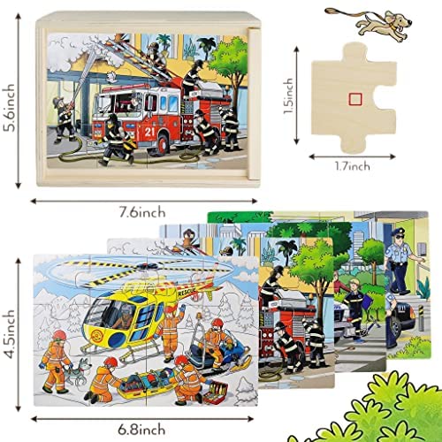 TOYLI 4-in-1 Emergency Vehicle Wooden Jigsaw Puzzles for Kids 48 PCs with a Box Fire Engine Ambulance Preschool Educational Activity Skills Development, Great Gift for Toddlers