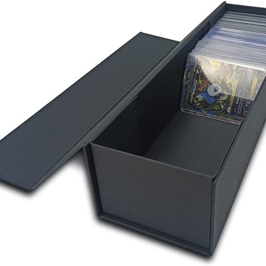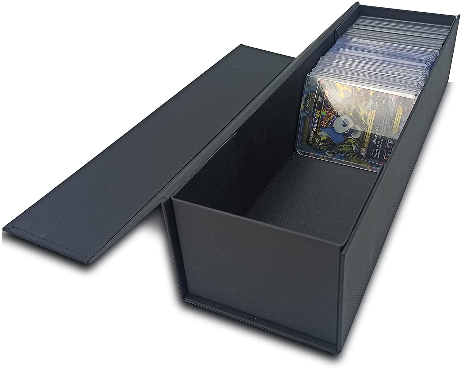 Trading Card Storage Box, Baseball Card Storage Box Holds 900+ Sport Cards or 200 Toploaders, Fits Football, Basketball, Hockey, Gaming & Trading Cards, Black, 13x4x3 inches