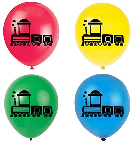 Train Latex Balloons, 12inch (16pcs) Railroad Train Birthday Party Decorations, Supplies