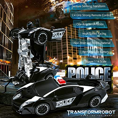 Transform Remote Control Car,RC Police Cars Transforming Robot Toys for Boys 4-7 8-12 ,Deformation Car Toys with One Button Transformation 360 Rotation Xmas Birthday Gifts for Boys Nephew (1:14)