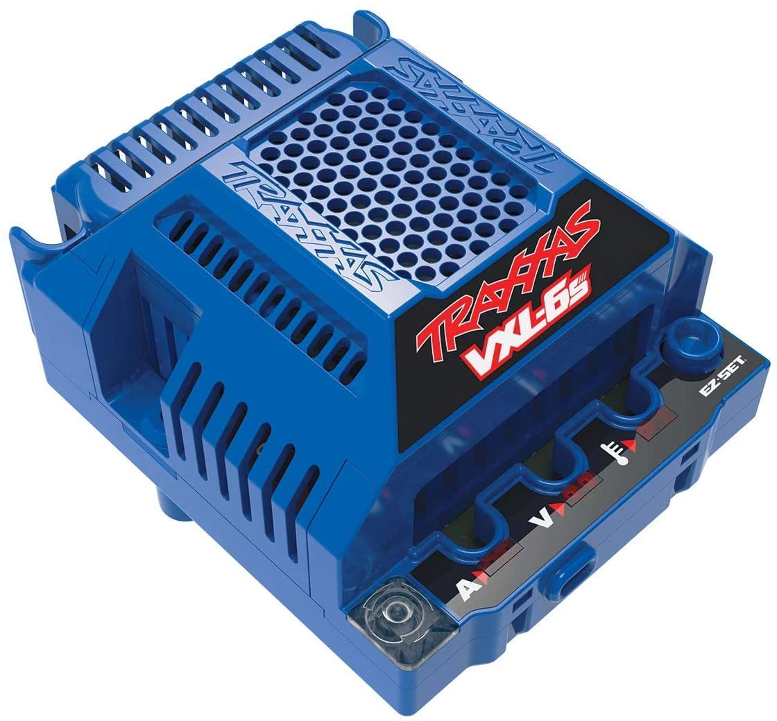 This is the Velineon VXL-6s Waterproof Electronic Speed Control from Traxxas. Few speed controls can match the VXL-6s ESC for raw, tire-shredding power. Whether tearing through the desert in the Unlimited Desert Racer or maxing out the E-Revo on a 70mph speed run, the VXL-6s ESC pours on the power you demand for over-the-top fun. Power doesn’t need to be complicated and the VXL-6s offers the same user-friendly experience you get with all Traxxas speed controls. Just plug in the batteries, press the EZ-Set button, and hold on!Features:Integrated telemetry for speed, RPM, voltage, and ESC temperature.Bright multi-color LED status lights provide clear feedback.Two-stage thermal shutdown protection with integrated cooling fan protects the VXL-6s from overheating.Built-in two-stage low voltage detection for Lithium Polymer (LiPo) battery use provides a clear signal to the driver that the batteries are nearing their minimum voltage threshold.Wide range of battery options from NiMH packs up to 6s LiPo power.The patented Training Mode is an exclusive Traxxas feature that reduces the overall power output of the VXL-6s by 50%, making it easier for inexperienced drivers to control their model. When you’re ready, simply change profiles to unleash full-throttle action.The EZ-Set push-button setup operates and programs just like other Traxxas speed controls—eliminating the need to learn a new set of procedures.The VXL-6s is programmable with three drive profiles: Sport Mode – Fwd / Brake / RevRace Mode – Fwd / BrakeTraining Mode** – 50% Fwd / Brake / 50% Rev Patented Traxxas High-Current Connectors eliminates a common bottleneck and maintain pure, unrestricted power flow from the batteries to the brushless power system.Locked Rotor Protection prevents system damage by cutting power if the vehicle is stuck or the motor is bound.Battery Over-Voltage Protection