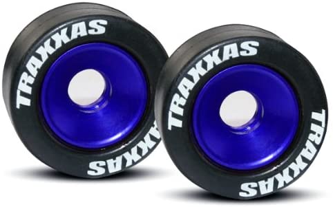 Wheels, aluminum (blue-anodized) (2)/ 5x8mm ball bearings (4)/ axles (2)/ rubber tires (2) Machined Aluminum Ball Bearing Wheels with Rubber Tires: Traxxas now offers an impressive set of red and blue-anodized machined aluminum wheelie bar wheels with rubber tires. The precision 6061-T6 aluminum wheels feature a stunning anodized finish and they ride on rubber-sealed 5x8mm ball bearings. For controllable and seemingly never-ending wheelies, Traxxas developed a durable, soft compound rubber tire that reduces side-to-side movement for stable, consistent wheelies. The rubber tires are available separately and they also install on the stock nylon wheels. Use Traxxas stock and hop-up replacement parts to get the most out of your Traxxas RTR vehicles. This product is made from high quality materials and designed for long-lasting performance. This is replacement hardware for use on Traxxas vehicles; consult your users manual for exact parts listings.