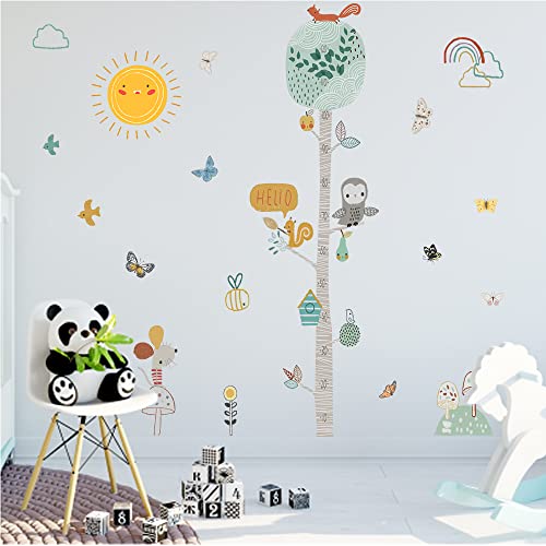 Tree Jungle Owl Squirrel Height Chart Decal for Kids Room Wall Decor Sticker Vinyl Cute Nursery Bedroom Mural
