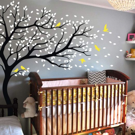 Tree Wall Decal Large Tree Wall Sticker Forest Mural Tree Blowing in The Wind Tree Wall Decals Wall Sticker Nursery Decals (Leaning Right, Black, White, Yellow)