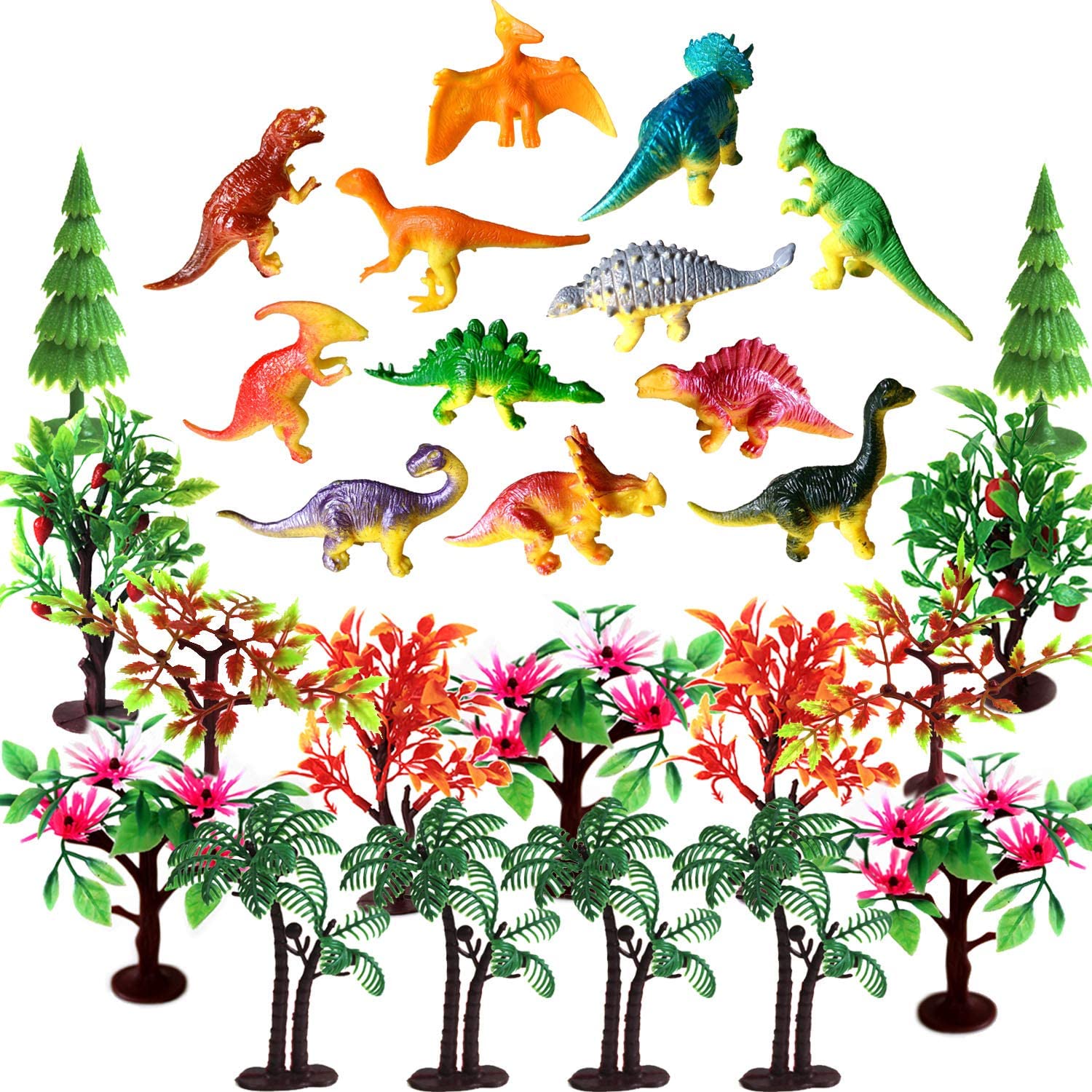 Trees Cake Decorations, OrgMemory Dinosaurs Trees with Bases,27pcs, Mini Dinosaurs, Dinosaur Toys, Plastic Trees for Crafts or Cake Decorations