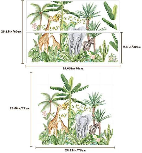 Tropical Rainforest Animals Plants Wall Stickers, AUHOKY Removable Cartoon Elephant Giraffe Nordic Plant Wallpaper Decor, Peel and Stick Art Murals for Kids Bedroom Background Nursery Home Decorations