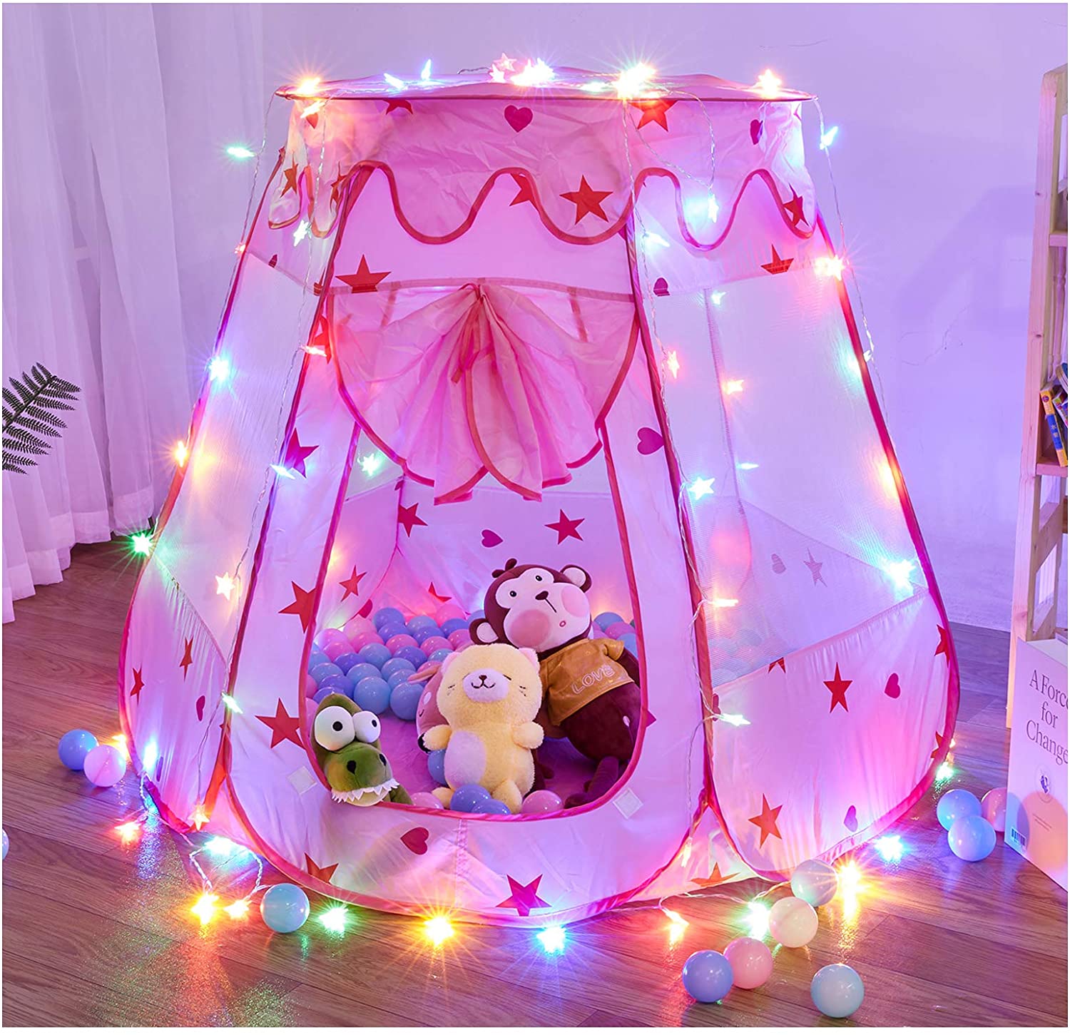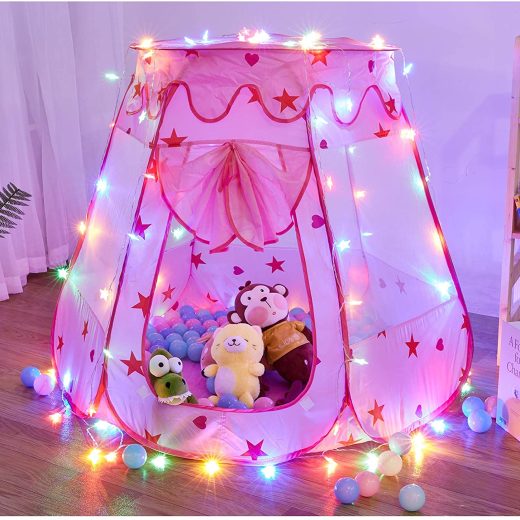 TTLOJ Pop Up Princess Tent Ball Pit for Girls Boys Toys Kids Play Tent, Balls not Included, Bonus Small Basketball Hoop or Santa hat at Random, Birthday for Kids